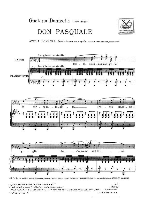 Bella siccome un angelo opera/oratorio it is from: Digital sheet music for baritone and piano, from 'don pasquale', from italian opera arias, edited by licciarda, francesca. Bella siccome un angelo (1) chord sequences automatically extracted by analyzing the bella_siccome_un_angelo (1).mid midi file. Download and print bella siccome un angelo sheet music for piano et chant by francesca licciarda from sheet music direct.